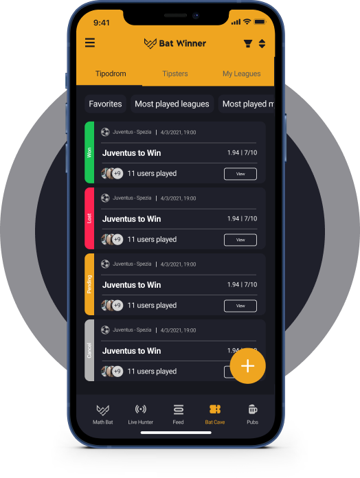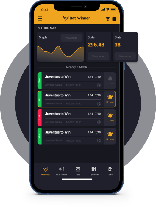 Hear about red cards, attacks, corners, and other match changes as they happen! Just set your news filter and enable BatWinner notifications.